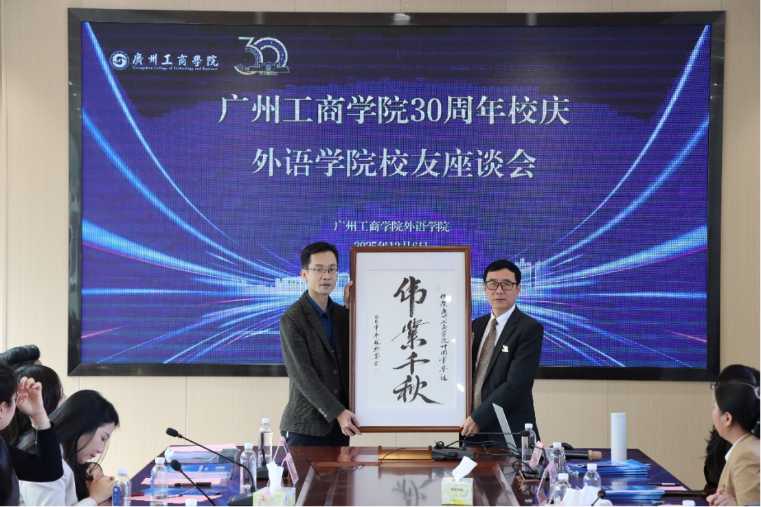2003届商务英语专业校友、佛山市星朗轩建材有限公司总经理、佛山校友会常务理事柯楚藩校友,结合自身在建材行业的深耕经历,分享了职业发展中的坚守与突破。他感谢学院传授的专业知识与综合素养,让自己能够在行业中稳步前行。他表示,将积极动员佛山地区校友资源,为学院毕业生提供更多就业机会与实践平台,为母校发展添砖加瓦。
