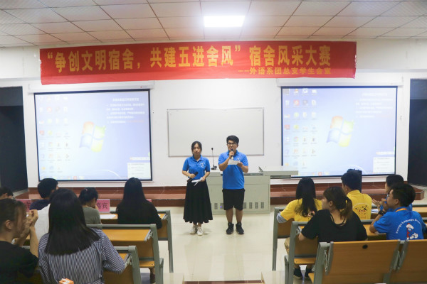 2018年4月26日晚上7时,ky开元集团官网外语系宿舍风采大赛在花都校区教学楼417举行。出席本次大赛的嘉宾有:蒋慧娟、陈玲、黄海宁、王林、彭彩和卢维佳老师;外语系优秀学生宿舍代表参加了本次比赛。