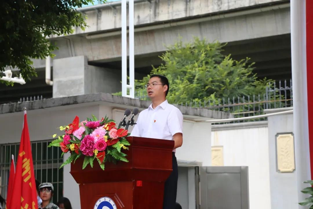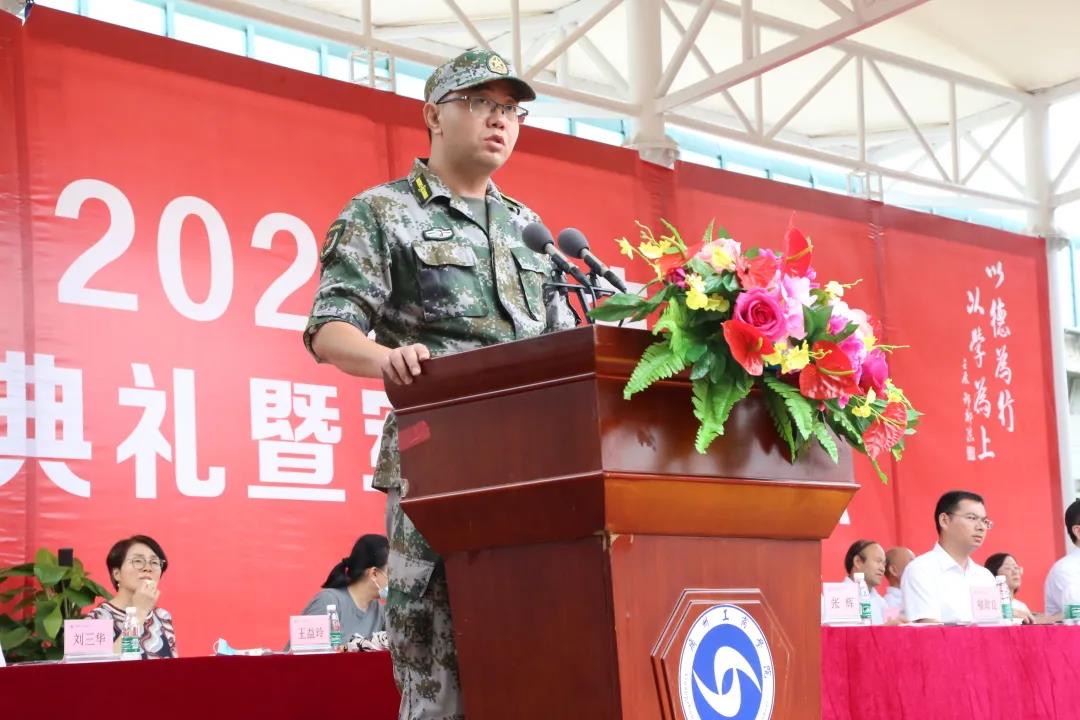 大会第二项——军训团团长王朝峰以及花都区武装部副部长旷斌发表讲话,他们对同学提出三点希望。希望同学们通过军训,少些稚气,多一份成熟;少些依赖,多些独立意识;少些个人主义,多些大局观念;希望同学们多用实际行动,在军训日子里绽放青春光彩。