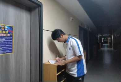 晚上19:45分,检查宿舍的全体工作人员已经集合完毕并为查寝工作做最后的准备。这一个学期刚开始,新上任的干事们的工作效率较高。他们分工合作,互相帮助,认真地投入到查寝工作中。