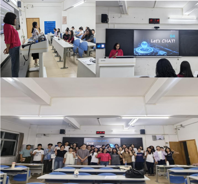 同学们围绕AI的特点、与人类智能的差异、AI能否成为教师及AI的发展趋势等话题展开讨论,并有多位同学和老师上台进行精彩的口语展示。活动在热烈的气氛中圆满结束,最后全体参与者合影留念。