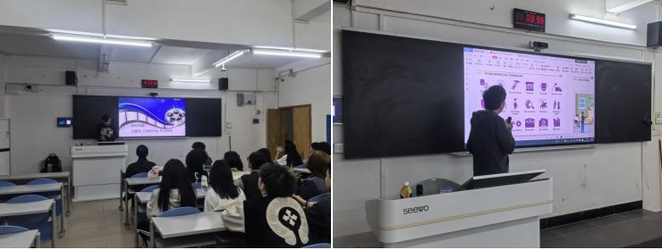 Steve首先介绍了多种电影类型并分享了《当幸福来敲门》《阿甘正传》《狮子王》等经典片段。随后,在讨论环节,同学们积极上台,通过Bilibili展示了自己最爱的电影,分享剧情、经典桥段及观影感悟,现场气氛热烈,精彩不断。