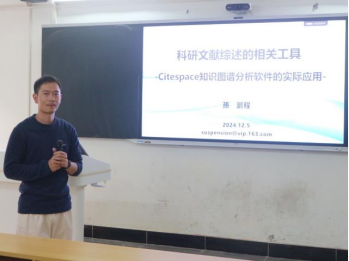 孙鹏程博士重点介绍CiteSpace知识图谱分析软件在科研文献综述中的实际应用,讲解该工具的功能和使用方法,包括数据库及界面介绍、数据准备与导入、分析方法与结果展示,以及关键词共现网络与聚类分析的可视化应用,为教师们开展科研工作提供新的方法与思路。
