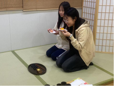 学生们都亲自体验了品茶的过程。在正式饮茶之前,大家先品尝了精美的日式点心,这些点心不仅为茶增添了甜美的香味,也体现了茶道中对细节的独特关注。随后,每位学生都用心感受了抹茶的浓郁与醇香,在点滴品味间领略了茶道的宁静之美。