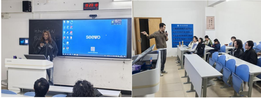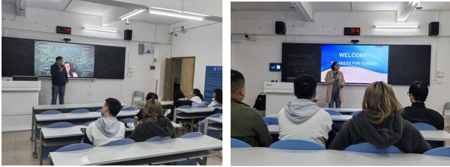 活动伊始,各位老师和嘉宾轮番上台,分享了他们的职业生涯经历与宝贵建议。广工商校友John、商英教研室肖瑶老师、刘仲良老师,以及来自迪拜的留学生Leo和中国南方航空的王浩天等,都带来了精彩的演讲。随后的Q&A环节,同学们积极提问,收获颇丰。