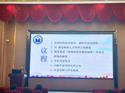 随后,外语学院商务英语教研室副主任冯伟婷详细解读了24级商务英语(跨境电商直播定制班)的人才培养方案,使师生对商务英语(跨境电商直播定制班)的人才培养过程有了全面了解。在听取了学院领导和学业导师的介绍后,学生代表张晗、凌敏先后发言,向学院和学业导师的辛勤付出表达感谢,并表示将珍惜这一难得的学习机会,努力学习专业知识,积极参与实践活动。