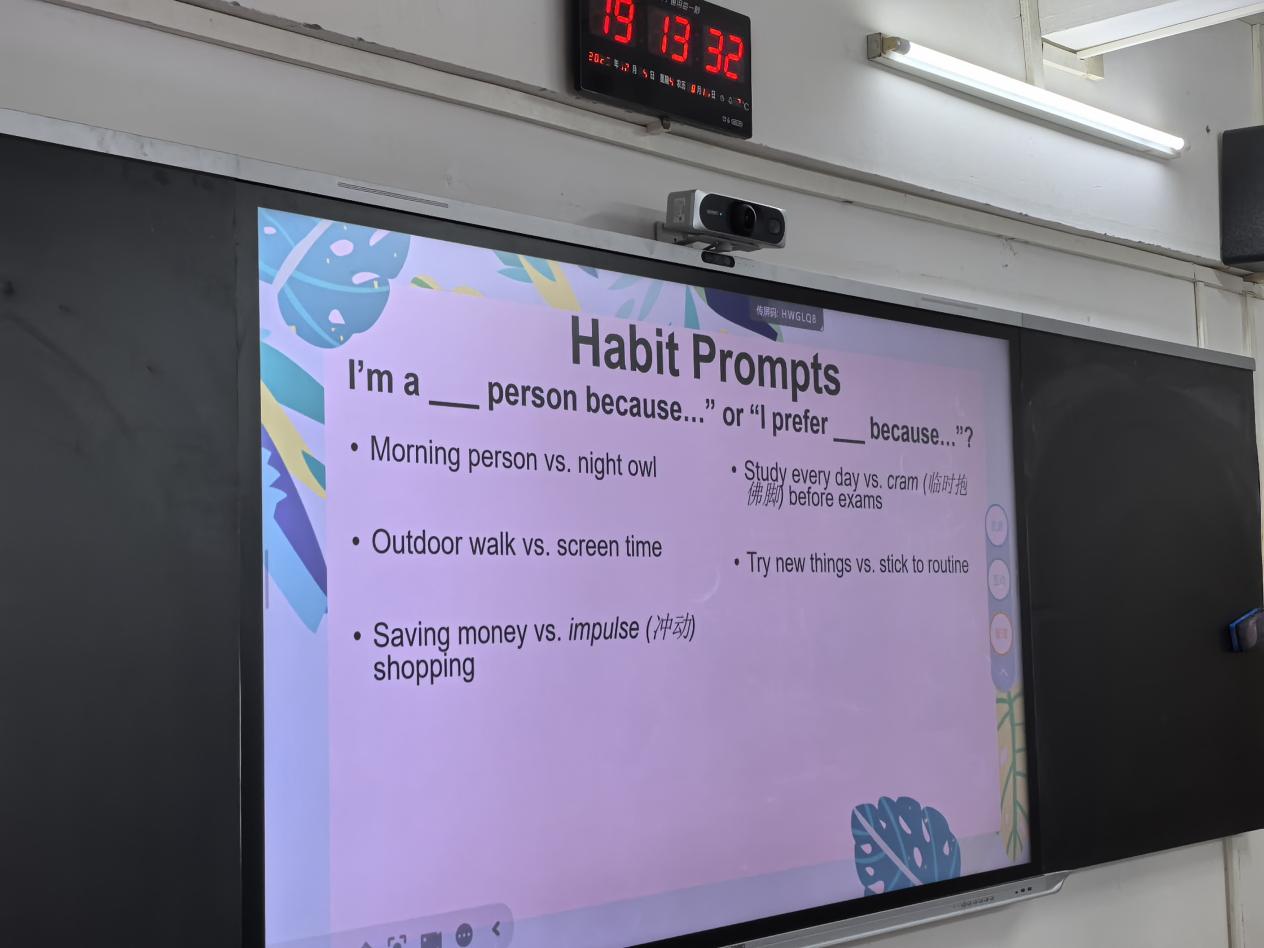 活动伊始,“Speed Discussion Line-Up”环节迅速点燃现场气氛。同学们围绕“晨型人或夜猫子”“户外活动或屏幕时间”“理性储蓄或冲动消费”等话题展开快速讨论,在轻松愉快的氛围中练习英语表达,分享个人生活习惯与偏好。