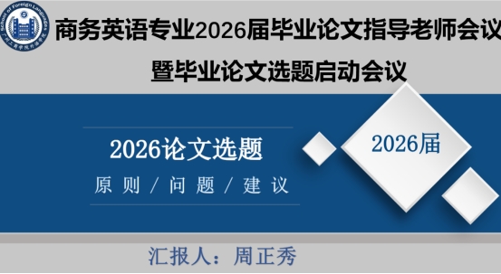 本次会议明确,2026届选题需严格遵循《普通高等学校商务英语专业本科教学质量国家标准》,789位毕业生的选题需满足专业、社会、学术、创新、问题突出五大价值原则,规避宽泛、陈旧、脱离专业等问题;同时严控时间节点,11月5日前完成选题、11月20日前完成论证、次年4月前完成重复率检测,确保各环节准时、规范落地。此次会议为2026 届毕业论文高质量推进筑牢基础,将持续以论文工作为抓手,强化学生商务实践与跨文化交流能力,助力专业人才培养质量再提升。