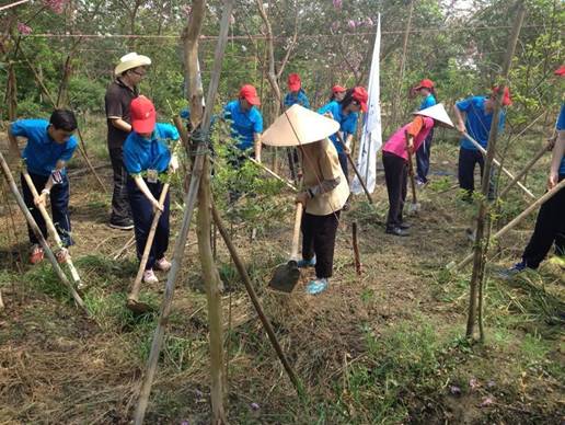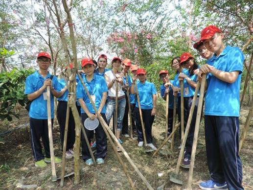 即使阳光猛烈,也挡不住蓝精灵们的热情。到达木场内,两位农民阿姨派发给蓝精灵们一人一把锄头。接过锄头的蓝精灵们眉欢眼笑,随着阿姨到林里与她们一同劳作。经过专业人士的指导,服务队的成员们不怕苦不怕累,顶着烈日帮助木场农民锄草。大家都顾不得烈日炎炎,纷纷用行动献上自己的一份绵力,为她们减轻负担。尽管汗如雨下,成员们都不愿放下手中的工具,生怕休息一小会就耽误了木场农民完成任务的时间。看着我们锄的草而堆积起的小山堆,疲惫的脸上显露出胜利的笑容。
