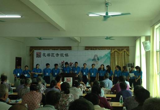 7月11日,由赤坭镇政府与蓝精灵服务队联合主办的以“百行孝为先,以孝聚德”为主题的道德讲堂及文艺汇演在东升村隆重举行。东升村村民参与了本次活动。