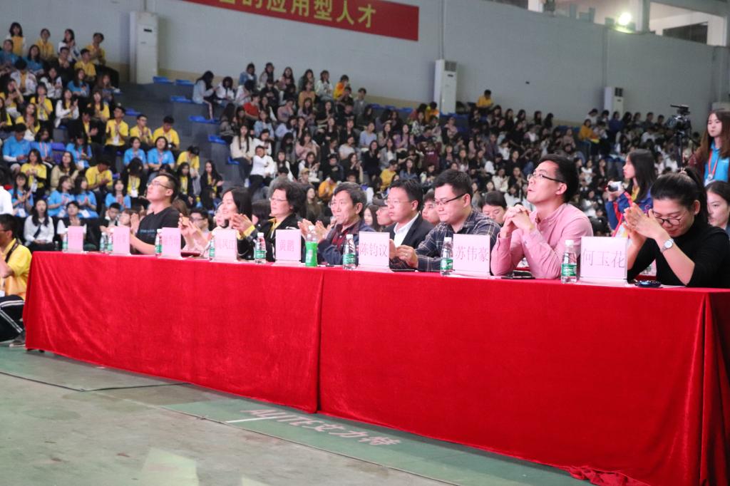 热场表演节目是由文娱部带来的舞蹈秀,强劲有力的舞蹈引来了台下全体师生们的拍手称赞,同时也拉开了本次开幕式的帷幕。本次开幕式有幸邀请了外语系主任高凤江教授、学院党委副书记院长助理黄鹏同志、外语系副主任谢秀珍老师、外语系党总支副书记办公室主任陈钧议老师、学工组组长苏伟豪老师、外语系学工副组长何玉花老师、外语系团总支书记毕玉祥老师等以及外语系辅导员老师、各系学生会主席团成员,他们的到来让开幕式更添光彩。首先,由学院党委副书记院长助理黄鹏同志致辞,他对外语文化节取得的成果表示肯定,同时对今年外语文化节的举办表示衷心的祝贺与祝愿。接下来外语系主任高凤江教授用全英式致辞,他流畅的全英文演讲,让在场学子肃然起敬,表达了他对外语文化节的高度重视,并在寄语中宣布2019年外语文化节正式开幕。外语文化节宣传片的播放不仅让我们了解了外语文化节的璀璨历程而且还向我们展示了语言文化的魅力。随后外语系团总支书记毕玉祥老师为我们介绍2019年外语文化节的活动详情,并号召大家积极参与,增强自身文化底蕴。最后由团学精心准备的大合唱作为结束表演再次引来了全场沸腾,预兆着2019年外语文化节的顺利举行。
