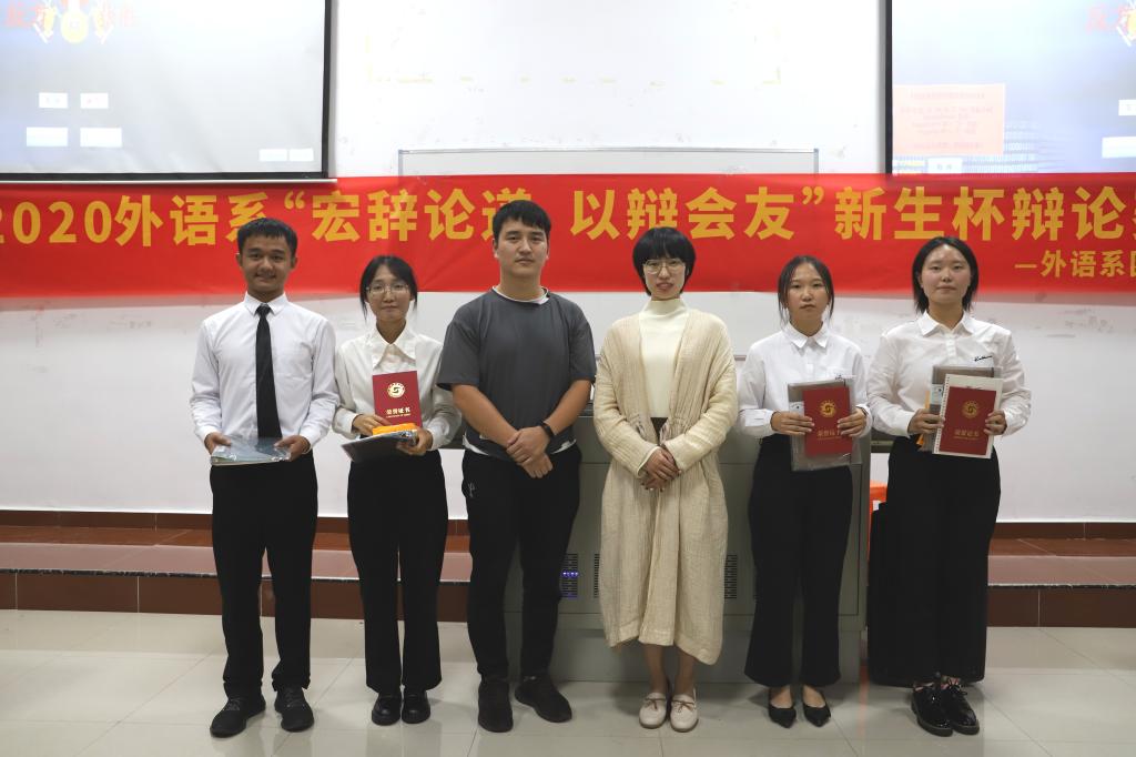 本次辩论赛严格遵循新国辩赛制规则,分为陈词、质询、自由辩论、总结陈词四个环节。在外语系学生会文娱部的各主持人的支持下,激烈的辩论赛决赛正式展开,进入决赛的四支队伍以自信从容的表现在辩论场上挥洒才华,双方辩手思路清晰,有理有据。随着自由辩论环节的开始,现场气氛在思维的碰撞下趋向高潮。双方辩论结束后,由外语系学工组汪玲老师、唐奕佳老师、团总支书记苑广伟老师依次对各个辩手的表现进行点评分析,指出双方优缺点。辩论赛的最后,最佳辩手们和冠亚季军一同接受了嘉奖。恭喜“乘风破浪”队突出重围,成为本届辩论赛的总冠军。