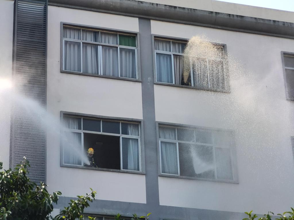 基本火灾逃生演练结束,消防员代表为对新生演练结果表达了赞许,并普及了有关消防的专业知识,比如火灾逃生的最佳时间、逃生姿势的影响、火灾发生的普遍原因、宿舍电子产品的安全问题以及灭火器、水枪水袋的使用方法,最后补充了火灾发生的自救方式。