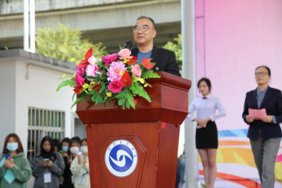 大会第二项,学校副校长朱特威致辞。朱特威副校长代表学校领导班子及本届运动会组委会,对运动会的胜利开幕表示热烈的祝贺,向全体运动员、裁判员、运动会工作人员致以崇高的敬意,向莅临大会的各位领导和来宾表示热烈的欢迎。他表示,学校体育发展是帮助学生在体育锻炼中享受乐趣,增强体质,健全人格,锤炼意志的重要途径。希望全体运动员遵守比赛规则,服从裁判,安全第一,勇于拼搏,赛出水平,赛出风格,发扬“更快、更高、更强、更团结“的奥运精神,尽情享受运动的快乐和成功的喜悦!最后预祝此次校运会取得圆满成功。