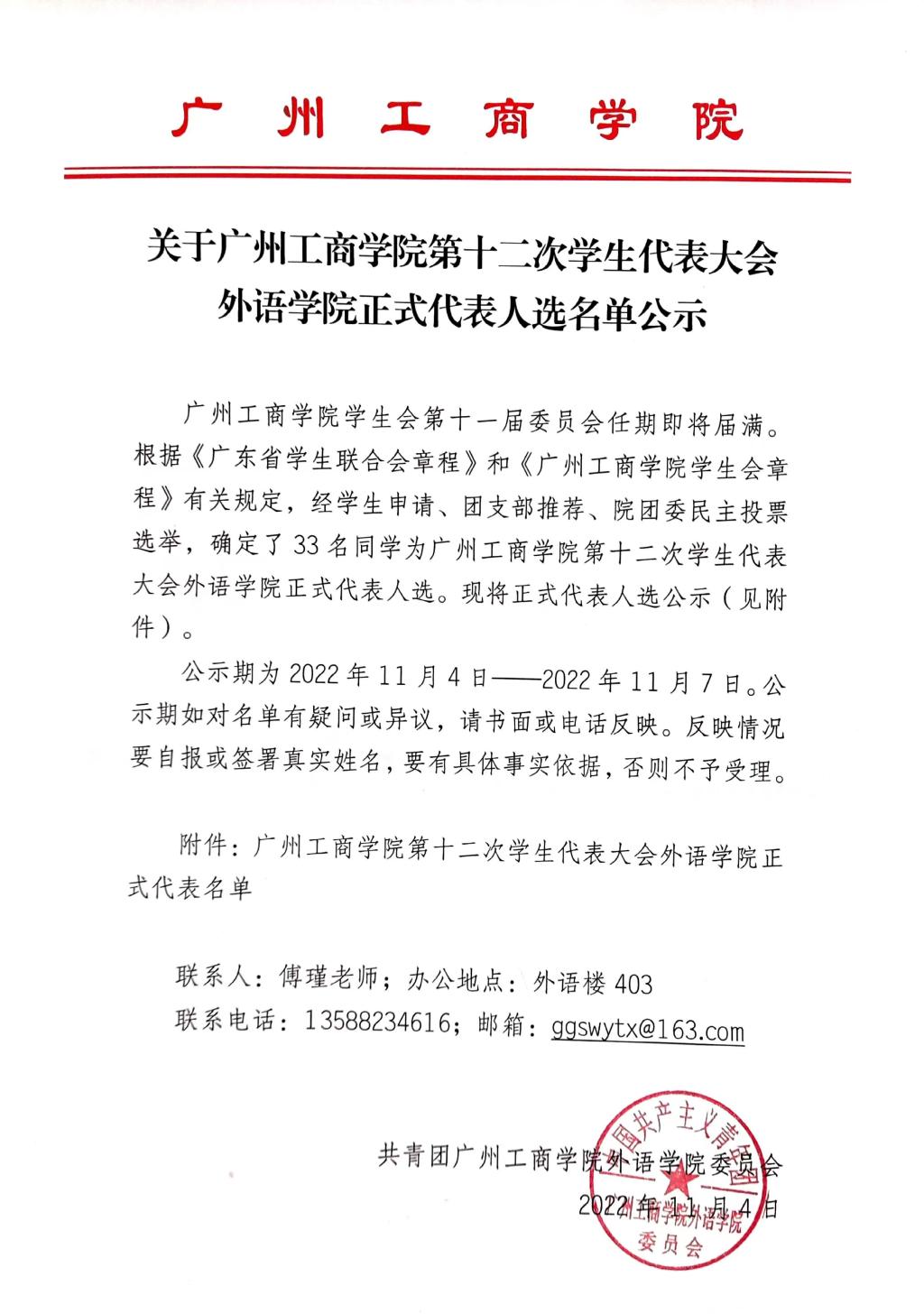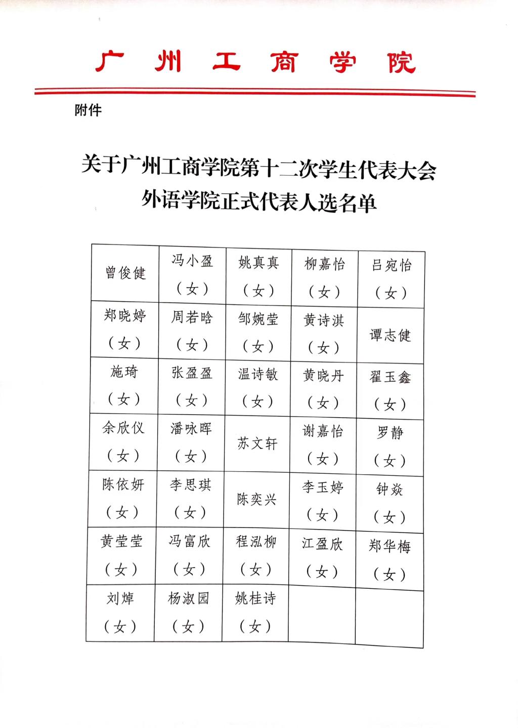 ky开元集团官网第十二次学生代表大会外语学院正式代表人选名单公示