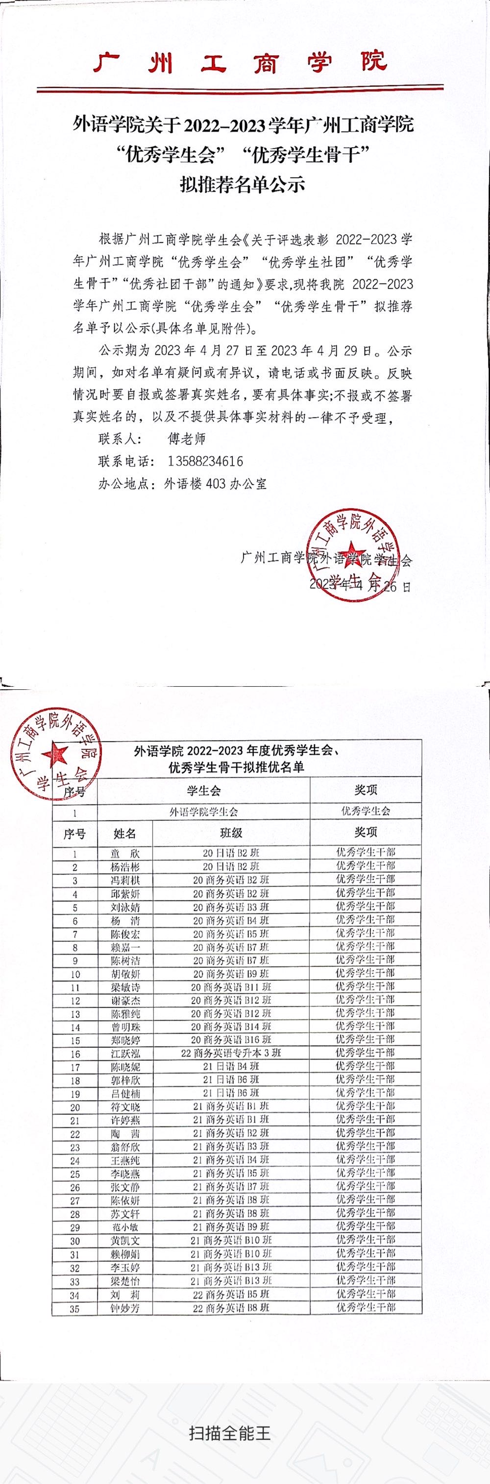 外语学院关于2022-2023学年ky开元集团官网“优秀学生会”“优秀学生骨干” 拟推荐名单公示