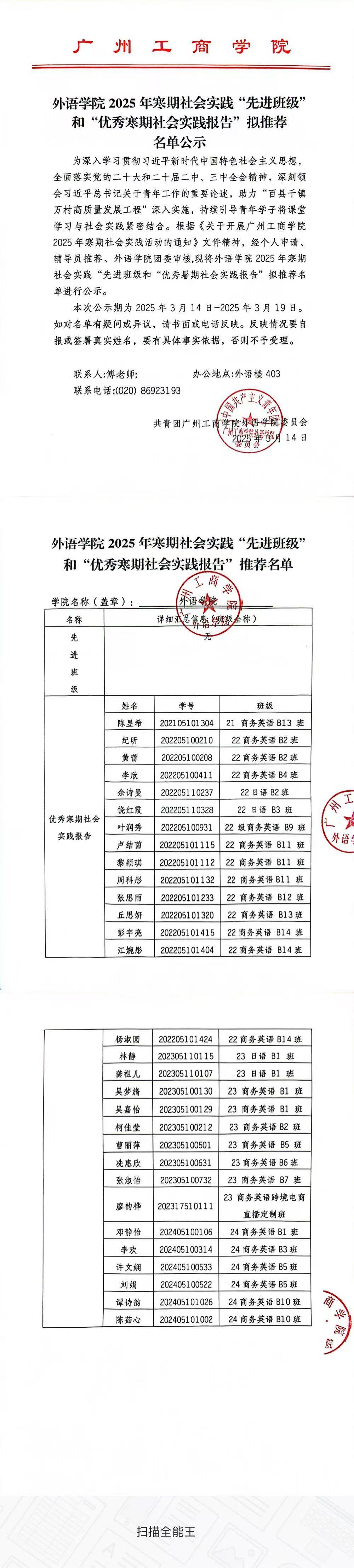 外语学院2025年寒期社会实践“先进班级”和“优秀寒期社会实践报告”拟推荐名单公示