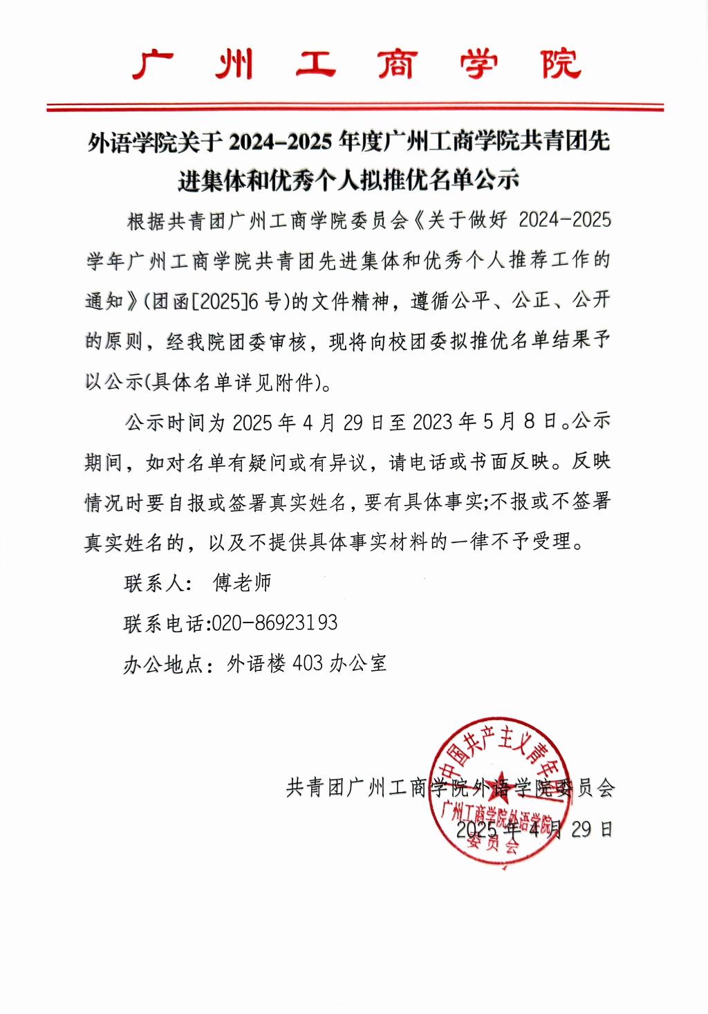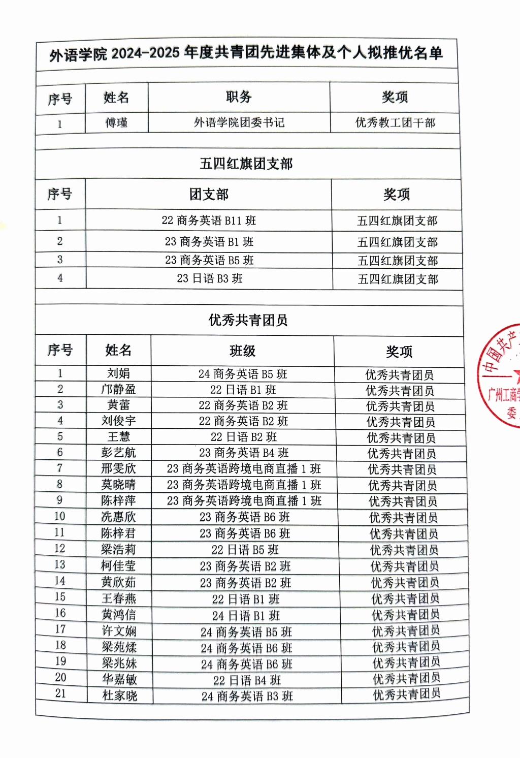 外语学院关于2024-2025年度ky开元集团官网共青团先进集体和优秀个人拟推优名单公示