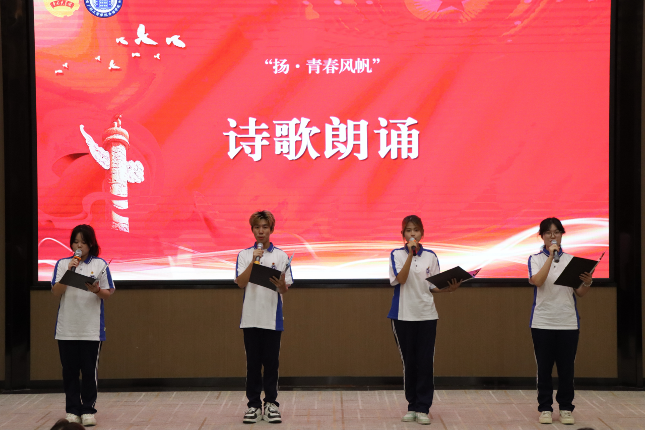 两位党员同学发言完毕后,外语学院学生会文娱部紧扣活动主题,为现场师生带来了富有感染力的诗歌朗诵节目。