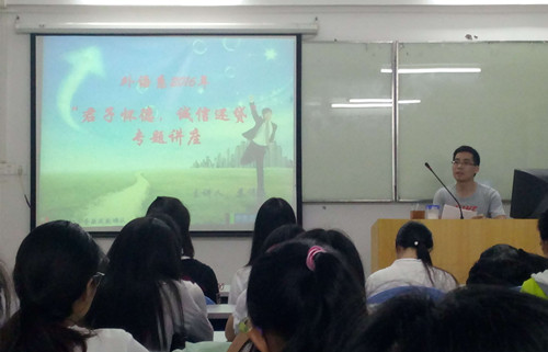 为进一步做好我院大学生助学贷款工作,增强学生诚信意识,外语系于11月15日晚上19:00,在外语楼205举办了“君子怀德,诚信还贷”的专题讲座。参加此次培训会议的有外语系贷款学生71人。会议由外语系辅导员苏伟豪老师主持。