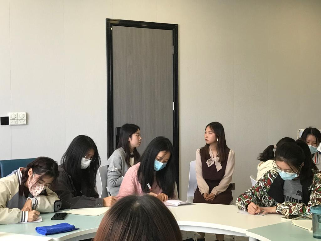 为了外语学院心灵港湾2021级干事能了解到科学的朋辈辅导知识,外语学院心灵港湾服务队于2021年11月25日在图书馆6楼心理中心团体辅导室举行了“朋辈帮扶”培训活动。本次活动的指导老师为唐奕佳老师。出席人员有主讲老师唐奕佳老师、外语学院心灵港湾服务队全体成员。本次活动的主题是助人自助,从“心”出发,旨在使心灵港湾队员具有一定的朋辈帮扶知识,掌握一定的心理学知识、心理咨询理论和技能。