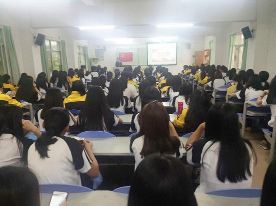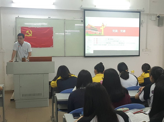 2018年4月27日,外语系学生党支部在花都校区外语楼103开展了“学习新党章”专题教育活动,本次活动的主讲人分别是外语系学生党支部组织委员彭彩老师和外语系学生党支部宣传委员苏伟豪老师,参加本次活动的是外语系学生党支部全体在校党员、党校第38期入党积极分子和第五期发展对象,总共138人。