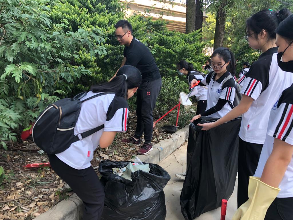 9月29日下午3时,外语系学生党支部28名师生党员准时于学校大门集合完毕。在学校工作人员的带领下我们一行来到我系主要负责区域,此次校园清扫主要解决南区至北区校到四周的塑料垃圾和树叶堆积物,同时重点清理了小区主干道两侧绿化带卫生问题。