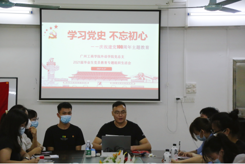 为迎接建党100周年,做好毕业生党员在校期间最后一期组织生活会。2021年6月27日上午,ky开元集团官网外语学院毕业生党员于外语楼301会议室举行离校教育会议,本次会议由外语学院学生第一党支部宣传委员毕玉祥同志主持。