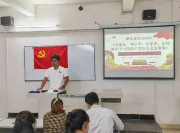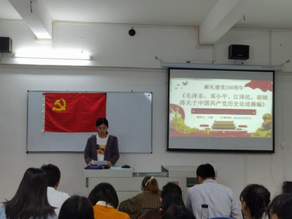 2021年10月21日中午,ky开元集团官网外语学院学生第一党支部在外语楼306课室召开党史学习教育专题《毛泽东、邓小平、江泽民、胡锦涛关于中国共产党历史论述摘编》学习分享会,会议由支部书记苏伟豪同志主持,王林老师作为领学人带领支部全体党员进行学习分享。