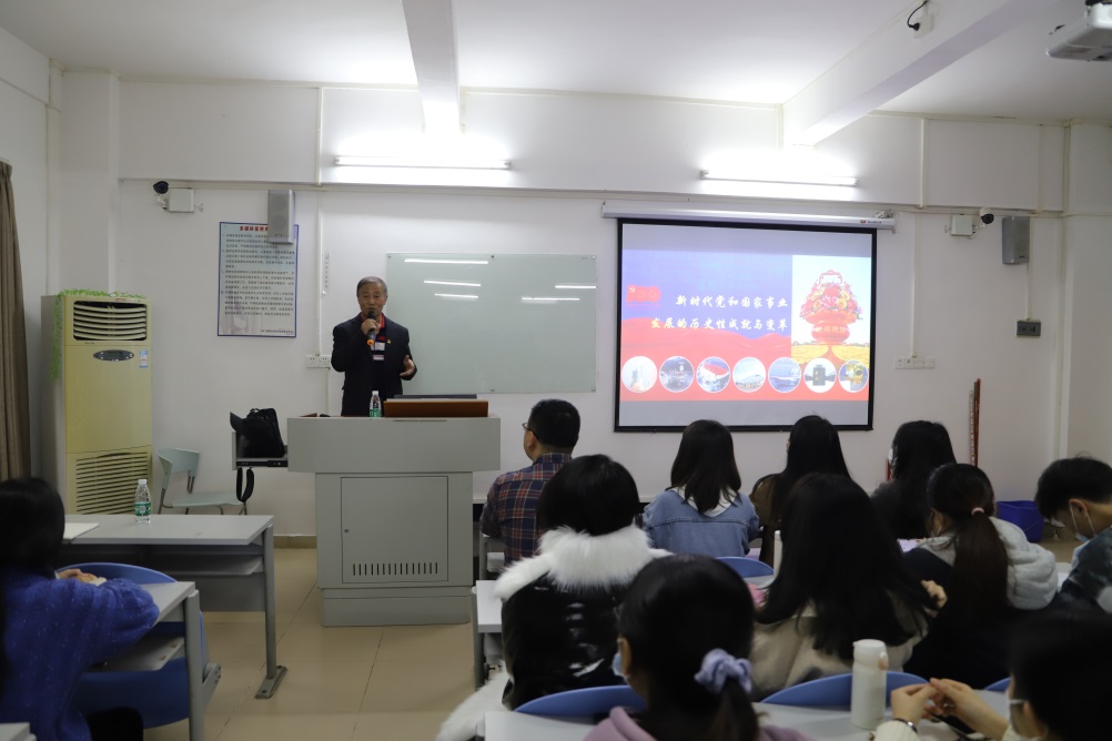 孙老师就以下几个方面内容展开汇报:一、历史性成就和历史性变革的理论成果:创立了习近平新时代中国特色社会主义思想;二、历史性成就和历史性变革的实践成果:解决了许多长期想解决而没有解决的难题,办成了许多过去想办而没有办成的大事;三、历史性成就和历史性变革的根本原因。孙老师还指出新时代是党的百年历史划分的第四个历史时期,始于2012年11月召开的党的十八大。从那时以来,全面建成小康社会目标如期实现,党和国家事业取得历史性成就、发生历史性变革。所谓历史性成就和历史性变革,就是指所取得的成就、所发生的变革前所未有;它的理论成果是创立了习近平新时代中国特色社会主义思想,它的实践成果则是解决了许多长期想解决而没有解决的难题、办成了许多过去想办而没有办成的大事。取得历史性成就、发生历史性变革的根本原因,在于党中央坚强有力,在于领导核心坚强有力。