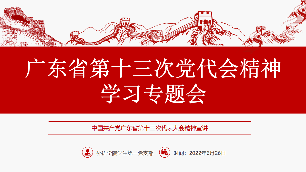 2022年6月26日下午,外语学院学生第一党支部于外语楼302课室组织召开专题学习会,学习专题分别为习近平法治思想专题和广东省第十三次党代会精神专题。本支部全体党员、预备党员和发展对象参会参与本次专题学习。