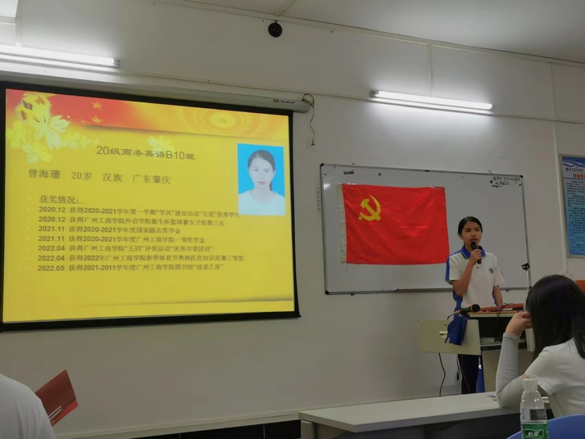 为进一步推进党务建设,做好发展党员工作。2022年6月26日上午,外语学院学生第四党支部在外语楼105教室召开发展对象转预备党员通表大会。大会由外语学院学生第四党支部组织委员覃青霞同志主持,宣布参会党员应到23人,实到22人,请假1人,符合开会人数要求。