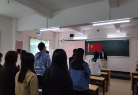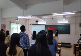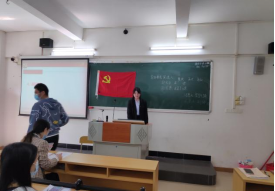 所有党员起立奏唱了中华人民共和国国歌。随后由支部书记郭宇琼同志向党员同志们介绍了郑无云同志与杨紫惠同志两位候选人的情况。全体党员投票完成后由曾舒旖同志担任计票人,由刘禧浩同志担任监票人进行唱票。最终投票结果为郑无云同志6票、杨紫惠同志12票,投票选举杨紫惠同志为支部宣传委员。