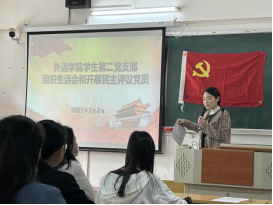 2023年3月2日中午12时,外语学院学生第二党支部在外语楼502课室召开了组织生活会及民主评议党员大会。