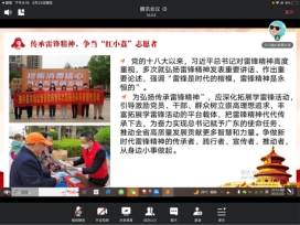 为深入学习领会习近平总书记重要指示精神,传承雷锋精神。外语学院学生第一党支部于2023年3月23日下午组织开展线上专题学习会,支部全体党员到会,会议由支部宣传委员冯巧娟同志主持领学。