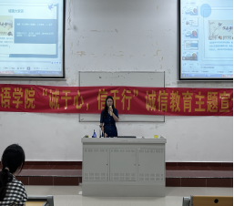 人无信不立,事无信不成,诚信是社会主义核心价值观的重要基础,为帮助毕业生树立诚信观念,培养诚信意识,了解现代社会征信体系,解答毕业生对国家助学贷款的疑惑,上好面向社会的第一课,ky开元集团官网外语学院于2023年5月6日召开以“诚于心,信于行”为主题的宣讲会。
