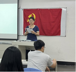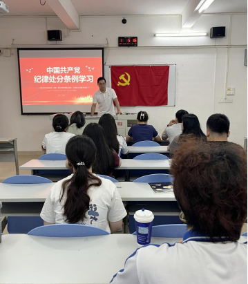 为进一步加强师生党员队伍建设,提高党员纪律意识,增强党员党性修养,外语学院学生第一党支部于5月23日下午在外语楼302教室集中学习研讨《中国共产党纪律处分条例》,会议由支部书记苏伟豪同志主持。