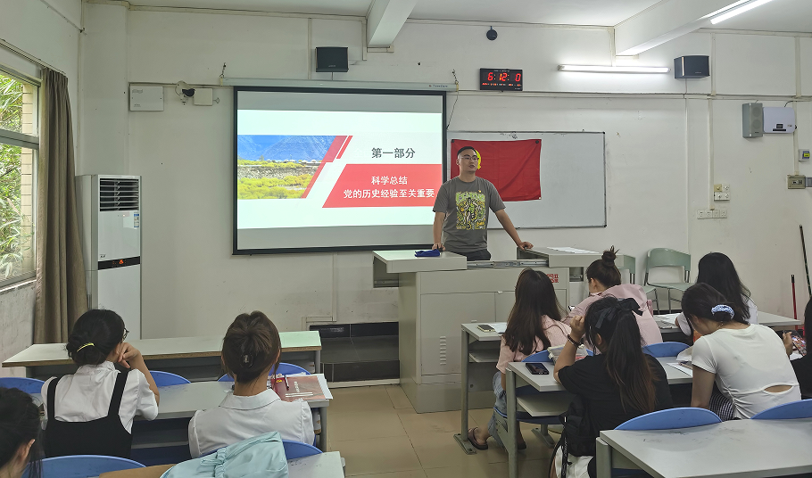 为深入贯彻落实习近平新时代中国特色社会主义思想和党的二十大精神,引导广大党员在深入学习领会党的创新理论中筑牢信仰之基,2024年6月30日下午,外语学院学生第三党支部于外语楼301会议室召开了以《全面准确理解党的百年奋斗历史经验》为主题教育专题会,支部书记毕老师为主讲人。