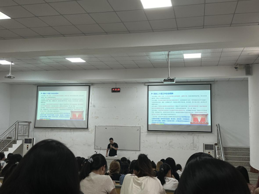 2024年9月12日下午,外语学院优秀辅导员宣讲团队深入班级,在教学楼517课室开展党的二十届三中全会精神基层宣讲活动。本次宣讲活动由辅导员苏伟豪老师主讲,21商英B1-5班全体学生参加。