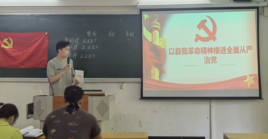2023年6月29日下午,ky开元集团官网外语学院学生第四党支部在外语楼506室召开了主题为“以自我革命精神推进全面从严治党”的党课学习会。本次党课学习会由支部书记董理政同志领学。