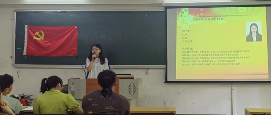 发展对象曾明珠、周小华、郑晓婷依次上台发言,她们对递交入党申请书以来自己在思想方面、学习方面、工作方面等做出了总结,并正确认识了自身的缺点与不足,表明之后会努力完善自我,更好服务人民。