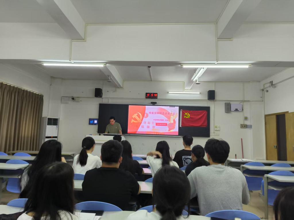 2025年7月1日上午10:00,外语学院学生第一党支部在外语楼302课室召开了会议,本次会议由支部书记苏伟豪主持,支部党员参加会议。本次会议主要进行加强党的作风建设相关内容学习及预备党员转正通表,进一步强化党组织建设,提升党员队伍素质。
