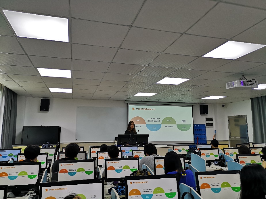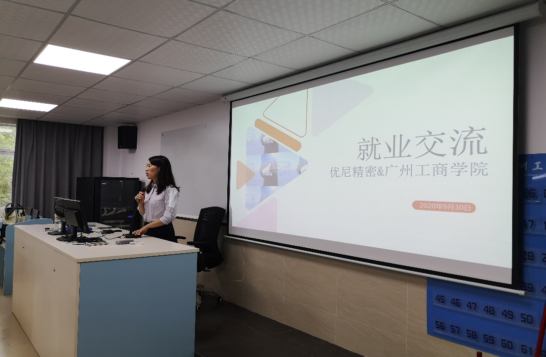 最后,人事科的裴小姐详细介绍了我系日语校外实践教学基地-广州优尼精密有限公司的有关情况与用人需求,并表示欢迎同学们到公司实习就业。