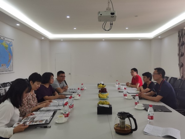参观结束后,双方在会议室就建设就业基地事宜进行交流探讨。双方分别简要介绍公司和学院的情况后,柯总就目前商务英语就业情况分享观点,感慨当前企业招聘商务英语人才的困难,同时也咨询商务英语专业学生的就业方向和就业特点以及留住人才的专业建议。谢秀珍副院长表示理解目前企业的困难,但新生代就业者的特点决定就业需求不仅仅是薪资待遇,企业有必要加强文化建设,给予员工归属感。双方就目前就业市场,学生就业特点进行探讨和交流。