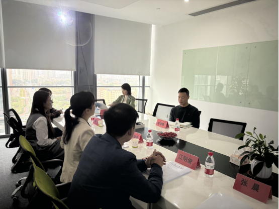 外语学院与广州饰马科技有限公司于2021年9月签订就业基地合作协议,近3年基地共接收学生实习59人次,目前有6人在公司就业。在走访中,江明俊副主任、邢佳平副院长与饰马科技创始人余俏锋先生、人事经理肖桥女士及毕业生分别进行了深入交流。