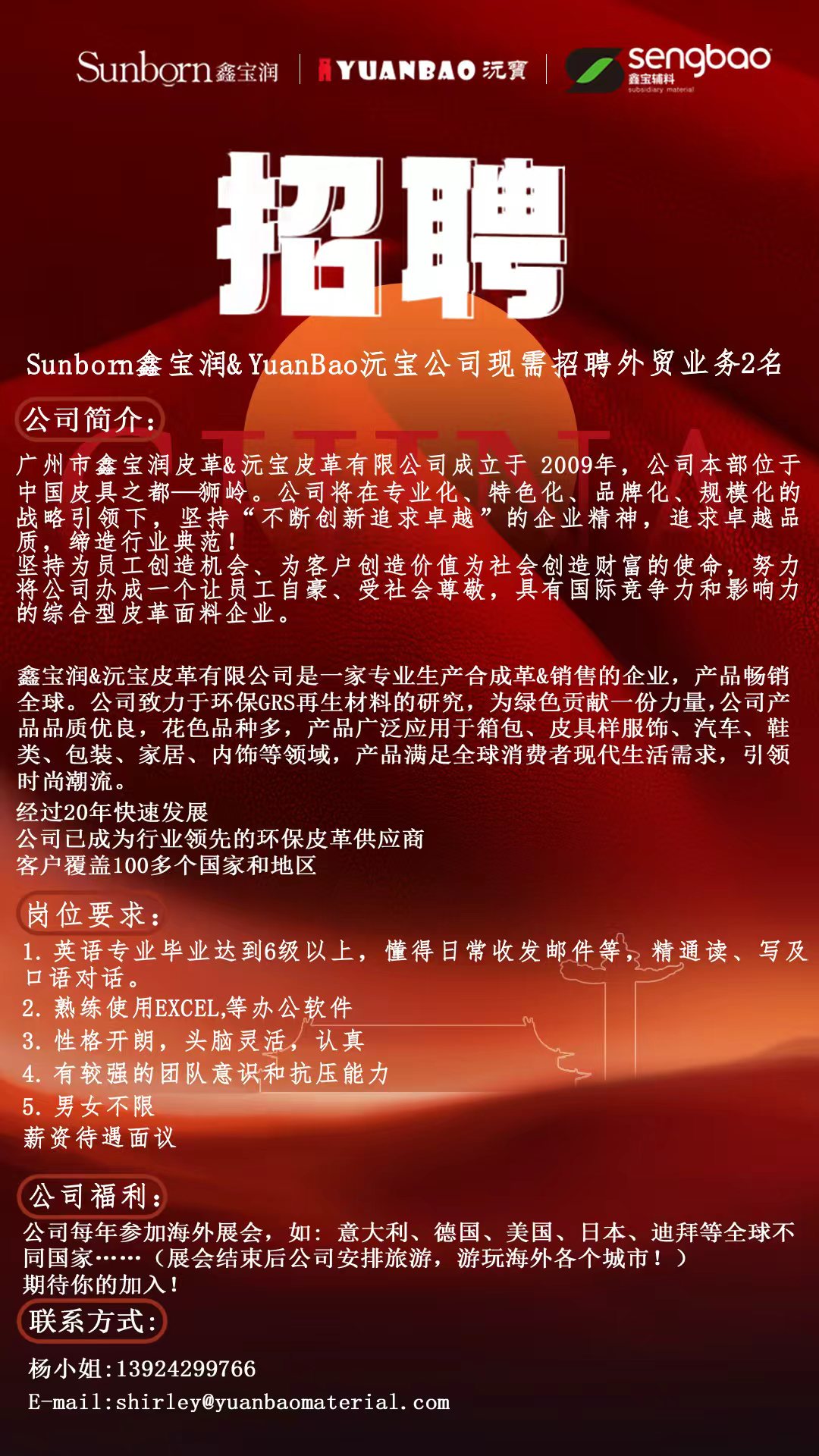 鑫宝润&YuanBao沅宝公司招聘外贸业务