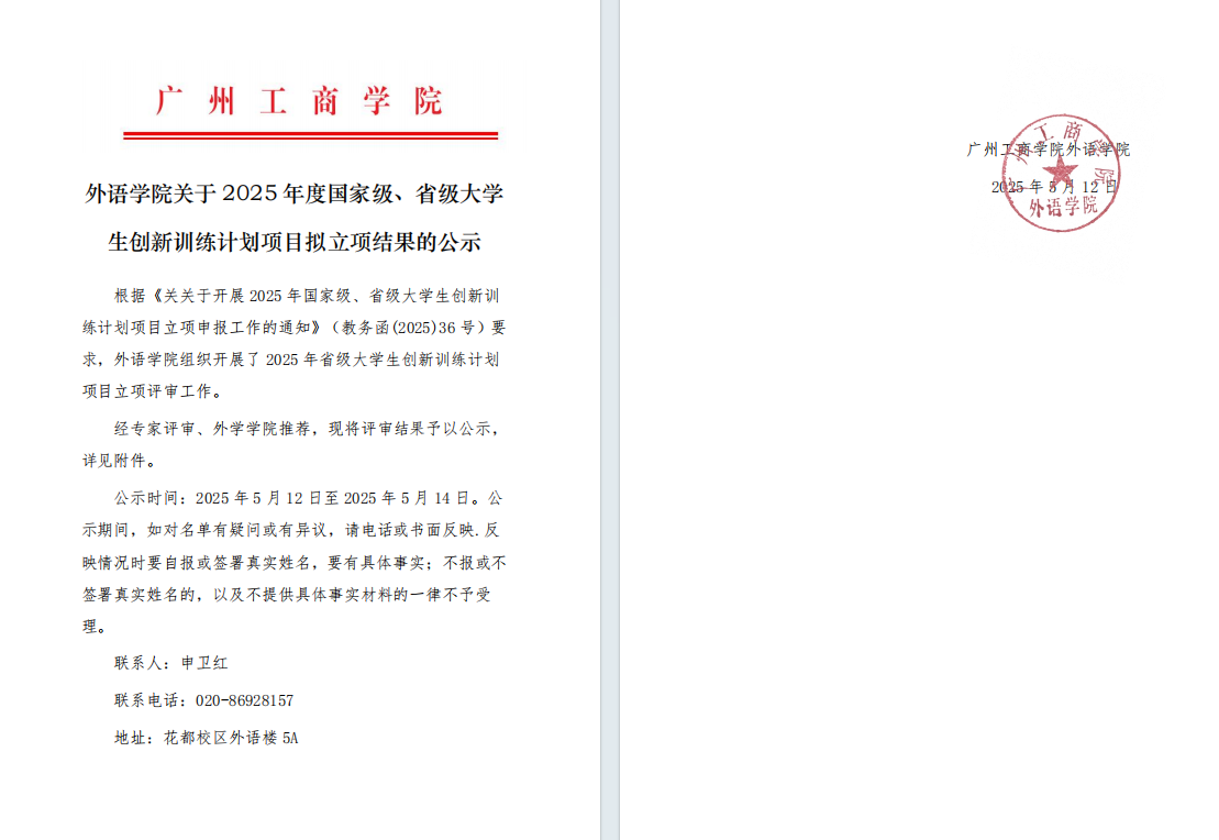 外语学院关于2025年度国家级、省级大学生创新训练计划项目拟立项结果的公示