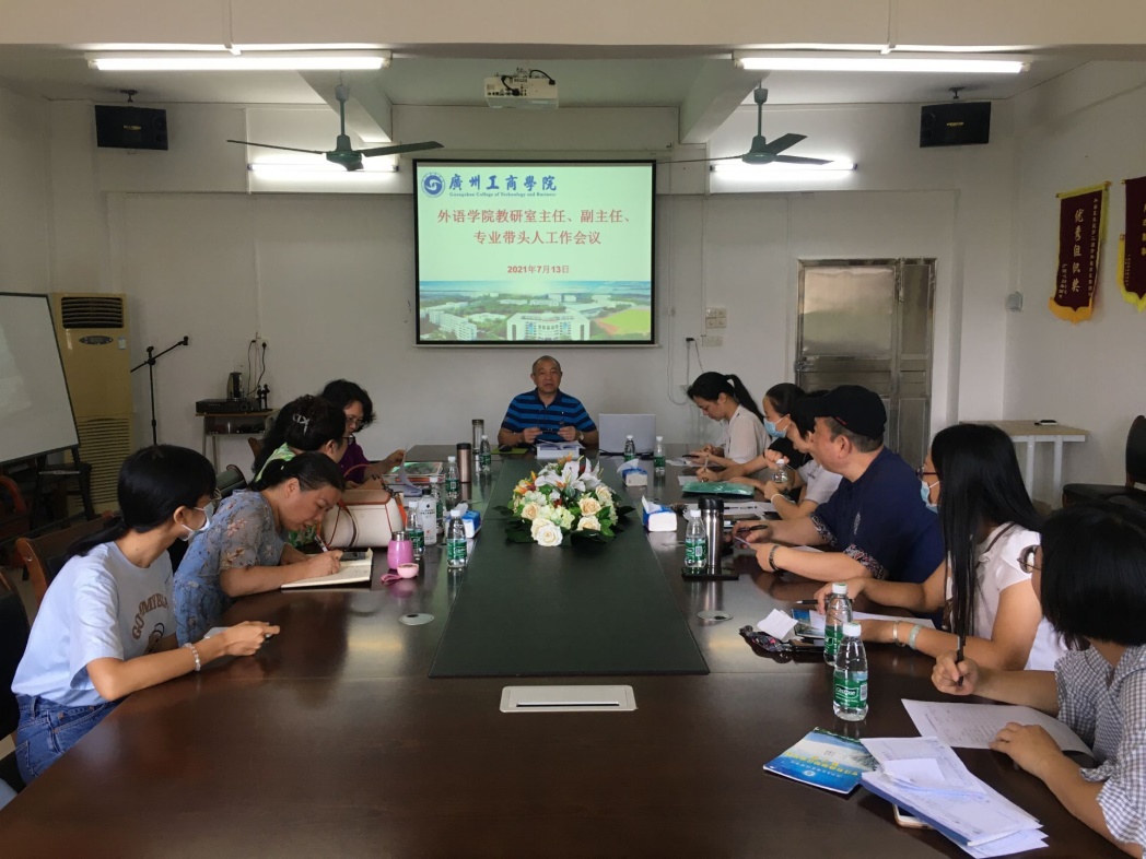 7月13日下午3点,外语学院召开教研室主任、副主任、专业带头人工作会议。常务副院长习传进教授分析了当前新文科、大外语的特点、外语教学面对的挑战、以及教学改革的趋势,并结合我院的实际,与大家一起探讨了如何提高教学质量和提高办学层次的问题。各教研室将积极制定下学年的工作规划,科研培育、团队建设、一流课程建设项目的立项、教师应参加的教学比赛类型、“我最喜爱的老师”活动的评选、学生应参加的比赛活动及与之相应的辅导竞赛的教师团队的建设,以及实践基地与产业学院的建设等具体内容。各教研室争取在下学期开学时,将2021-2022学年的各类各项具体任务落实到团队或个人,确保各类各项具体任务的顺利完成。