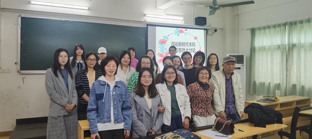 为响应新时代全国高校本科教育工作会议精神,积极落实学院本科教学新五年规划,以本科合格评估整改方案为导向,外语学院基础商务英语教研室全体教师于3月25日在外语楼506开展了“深化新时代本科教育思想大讨论”活动。本次活动由教研室主任周正秀老师主持。
