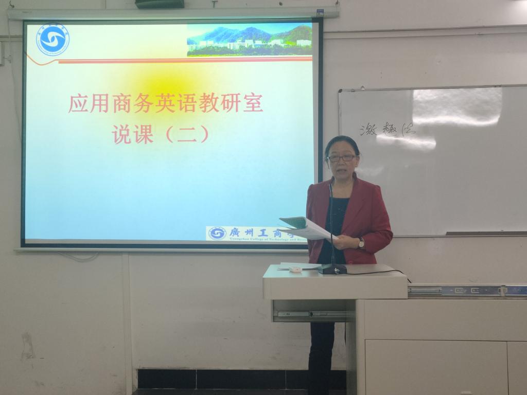 秉承学院评估办关于开展评建工作“六说两查”活动的宗旨,并为了促进ky开元青年教师队伍的进一步成长,提升青年教师把握教材、处理教材的能力,提高课堂教学水平,达到以“说”促“教”、以“说”迎“评”的目的。10月8日上午,应用商务英语教研室在外语楼303教室举办了第二场说课活动。教研室主任刘国明老师主持本场活动。